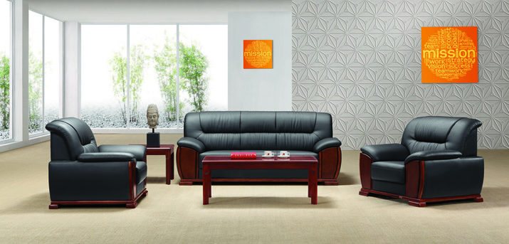 面料:采用進口西皮;皮面光澤度好,透氣性強,柔軟而富于彈性,厚度>1.2mm。泡綿:坐墊采用45Kg/m3發(fā)泡高密度高回彈臺資“東亞”牌優(yōu)質(zhì)泡綿,軟硬適中,回彈性能好,不變形;根據(jù)人體工程學(xué)原理設(shè)計,坐感舒適。基材:選用優(yōu)質(zhì)樺木及夾板,經(jīng)脫脂、烘干、防蟲等處理,含水率≤11%,內(nèi)置蛇形彈簧及彈力繃帶(蛇形彈簧采用80#碳素蛇形鋼條,彈力好,耐用性強,不易變形)。底座和扶手采用老撾胡桃木制作,噴大寶漆。